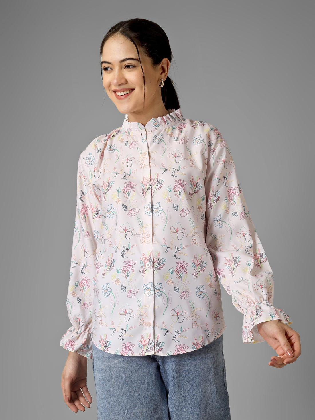 Product DescriptionPrinted Top with elasticated detail at wrist and pleated mandarin collar. Feminine charm meets...