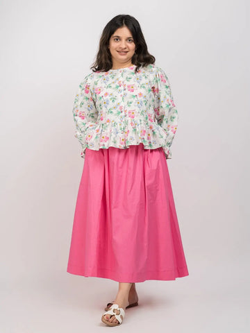 Product DescriptionEmbroidered white pure cotton top with bishop sleeves and delicate pleated stand collar. Feminine...