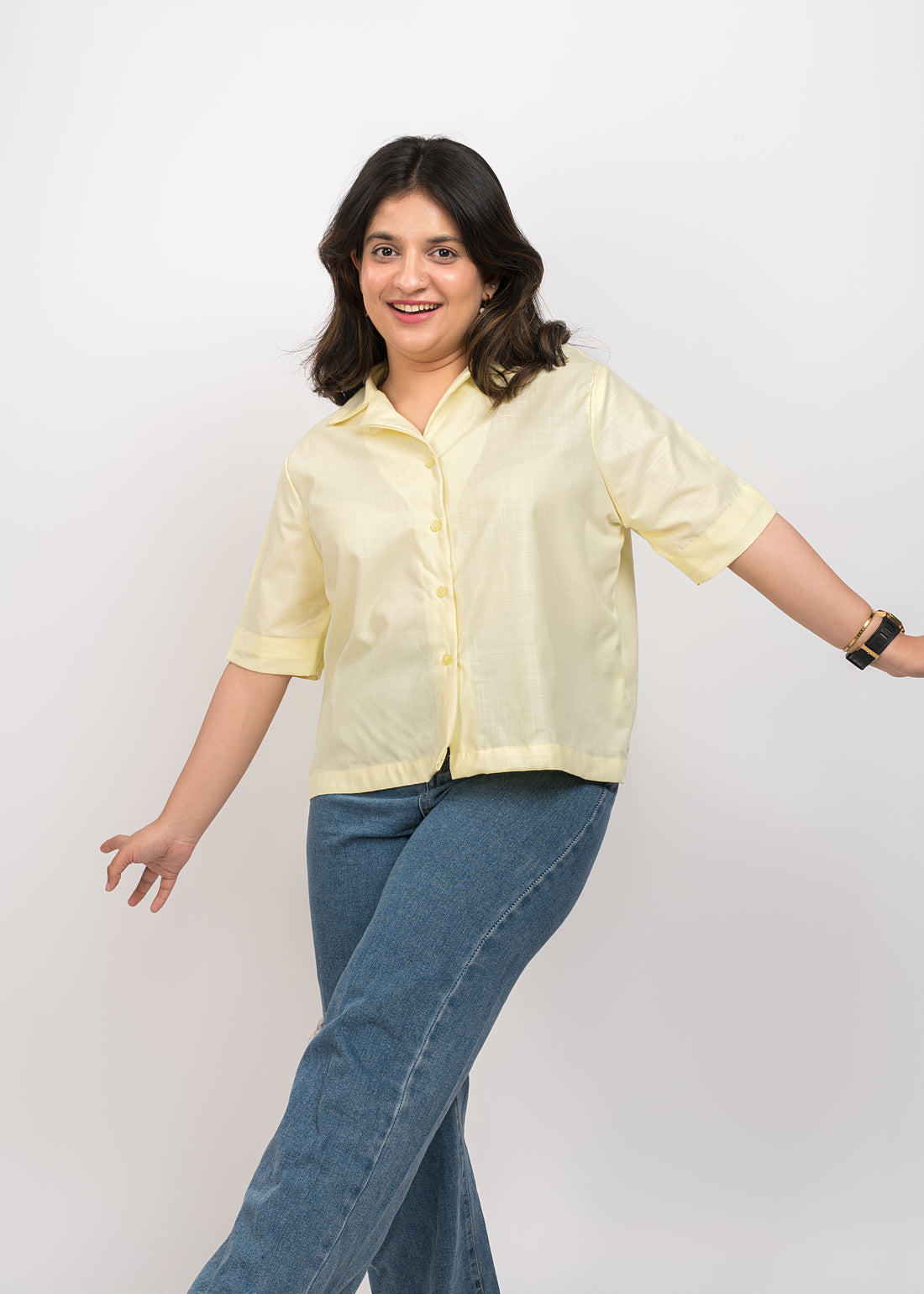Product DescriptionYellow cotton-linen shirt in a boxy fit with a coat collar and loose sleeves....