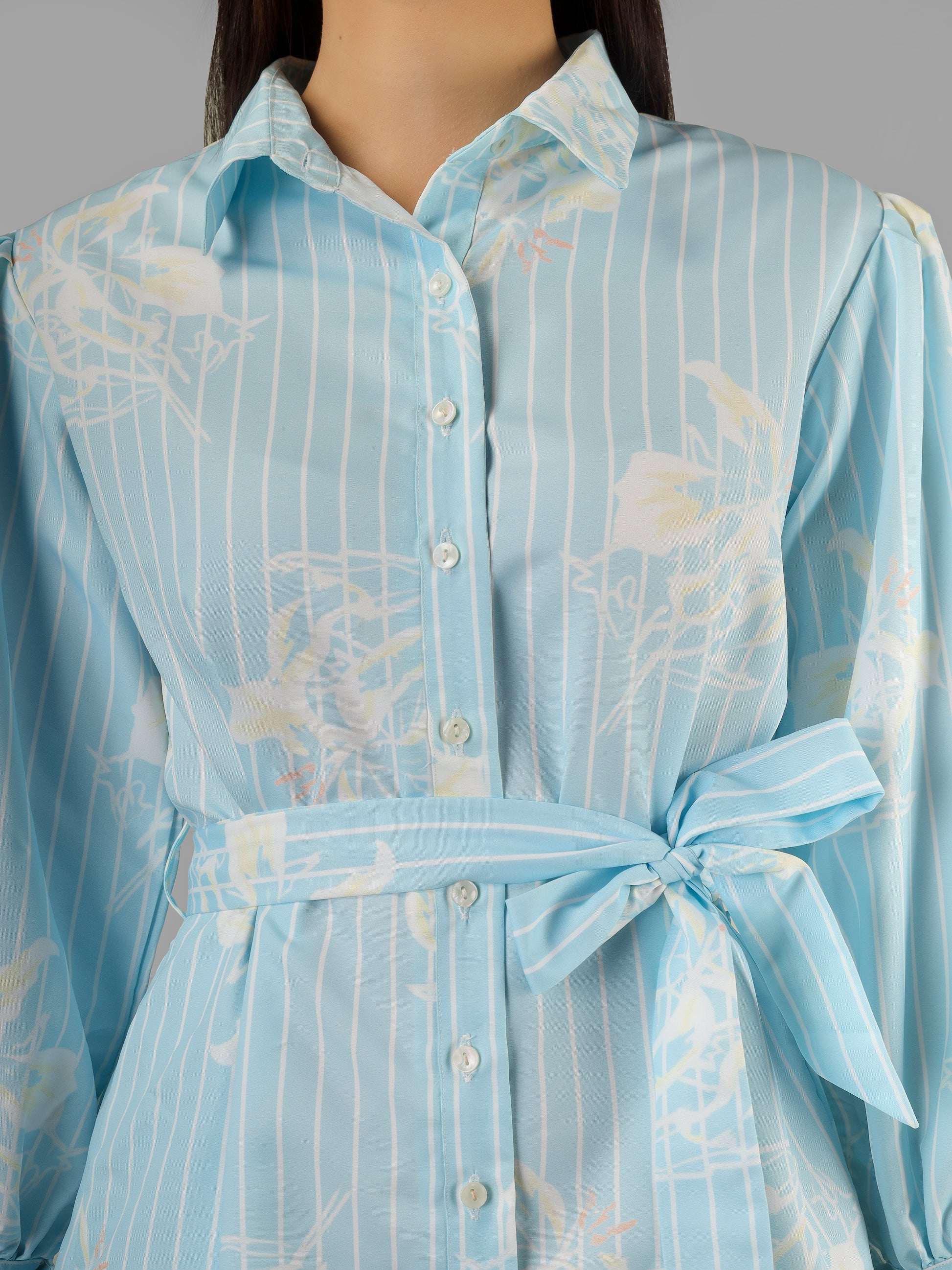 Printed dress with belt detail and pocket on one side. Easy for brunch and all day long.