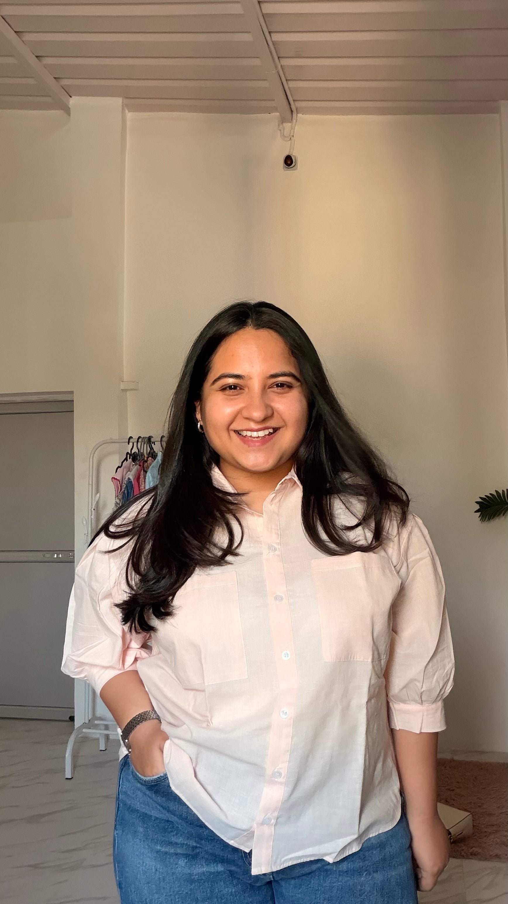 Puff sleeve cute shirt with pocket details. Classic and Effortless.